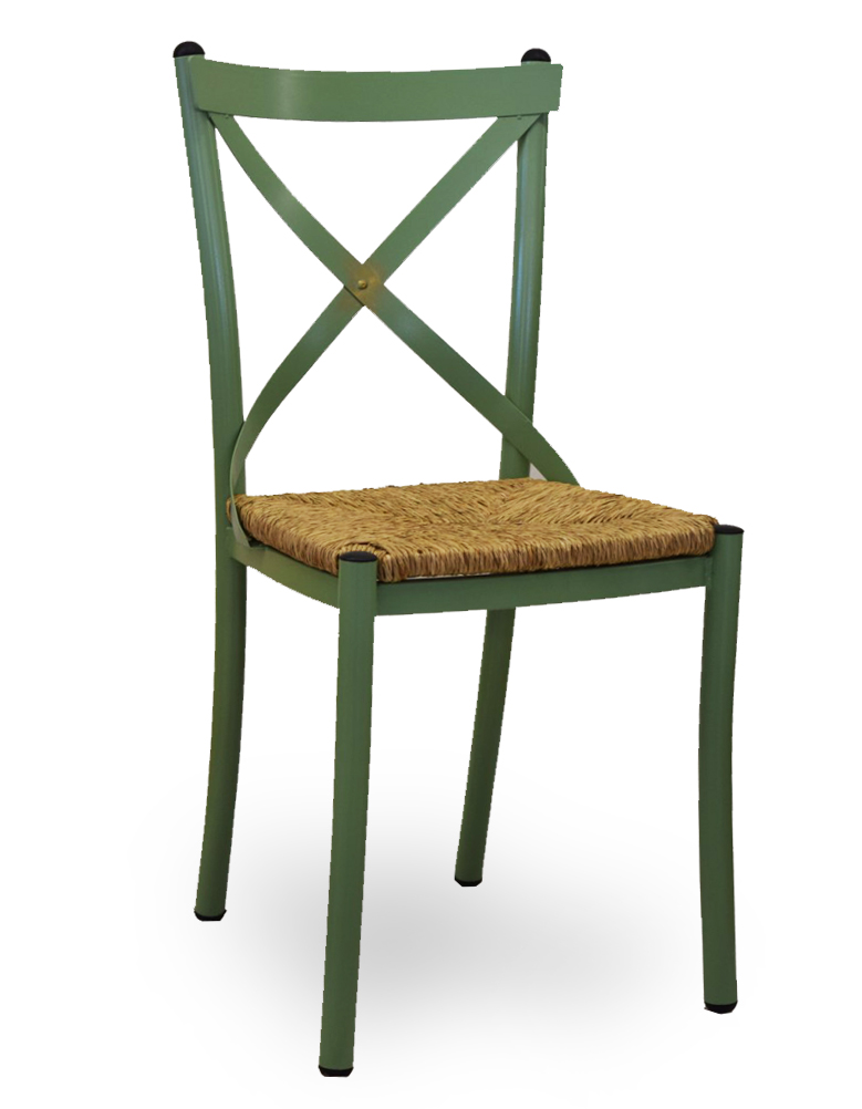 Καρέκλα με μεταλλικό σκελετό και κάθισμα από ψάθα, στα χρώματα της επιλογής σας.