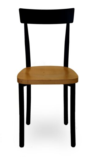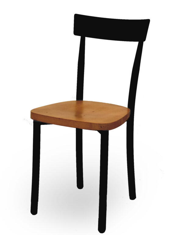 Καρέκλα με μεταλλικό σκελετό και κάθισμα από δερμάτινη, ύφασμα ή ξύλο.