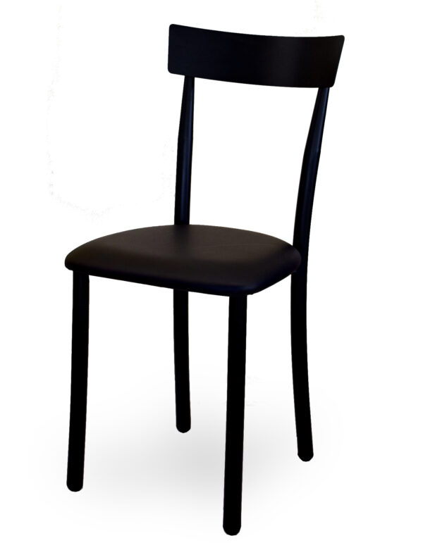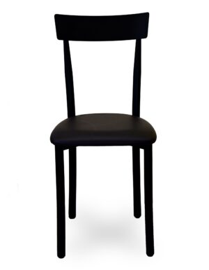 Καρέκλα με μεταλλικό σκελετό και κάθισμα από δερμάτινη, ύφασμα ή ξύλο.